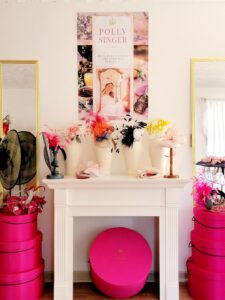 Polly Singer is an internationally renowned milliner, tea entrepreneur, etiquette trainer and motivational speaker. Her mission is to bring joy, inspiration and elegance to others through her stunning hats, artisan teas and afternoon tea etiquette events.