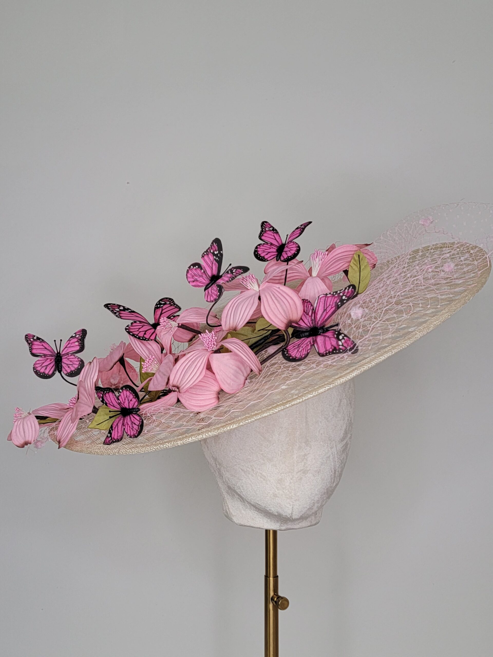 I would suggest The Velma, a bergere hat that features pink butterflies and dogwood flowers.