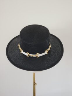 $350.00Looking for an elegant hat that will take you everywhere? Leigh is made from the finest straw and trimmed with gold snaffle bits.
