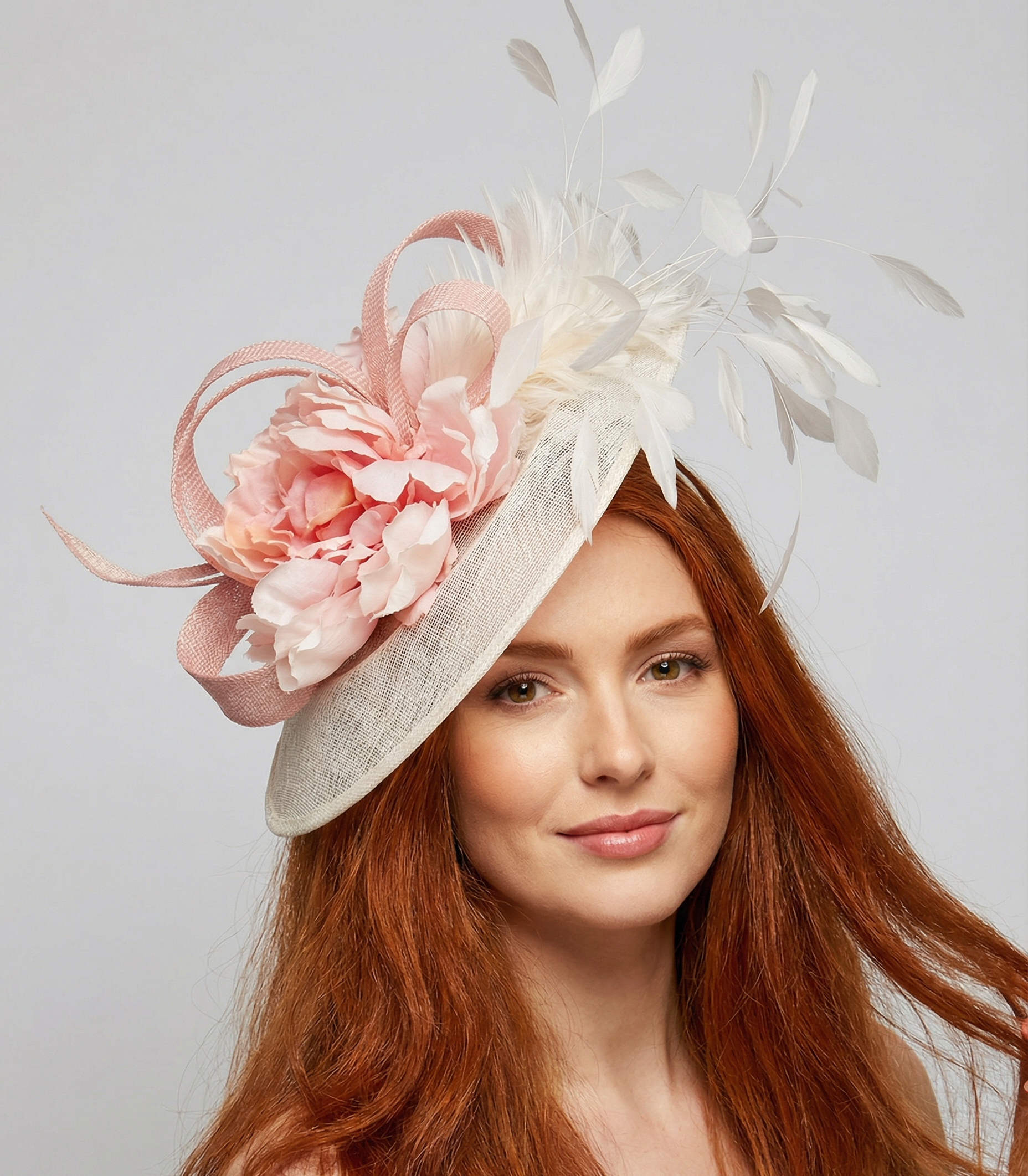 Clara Pink and White Feather Saucer Hat