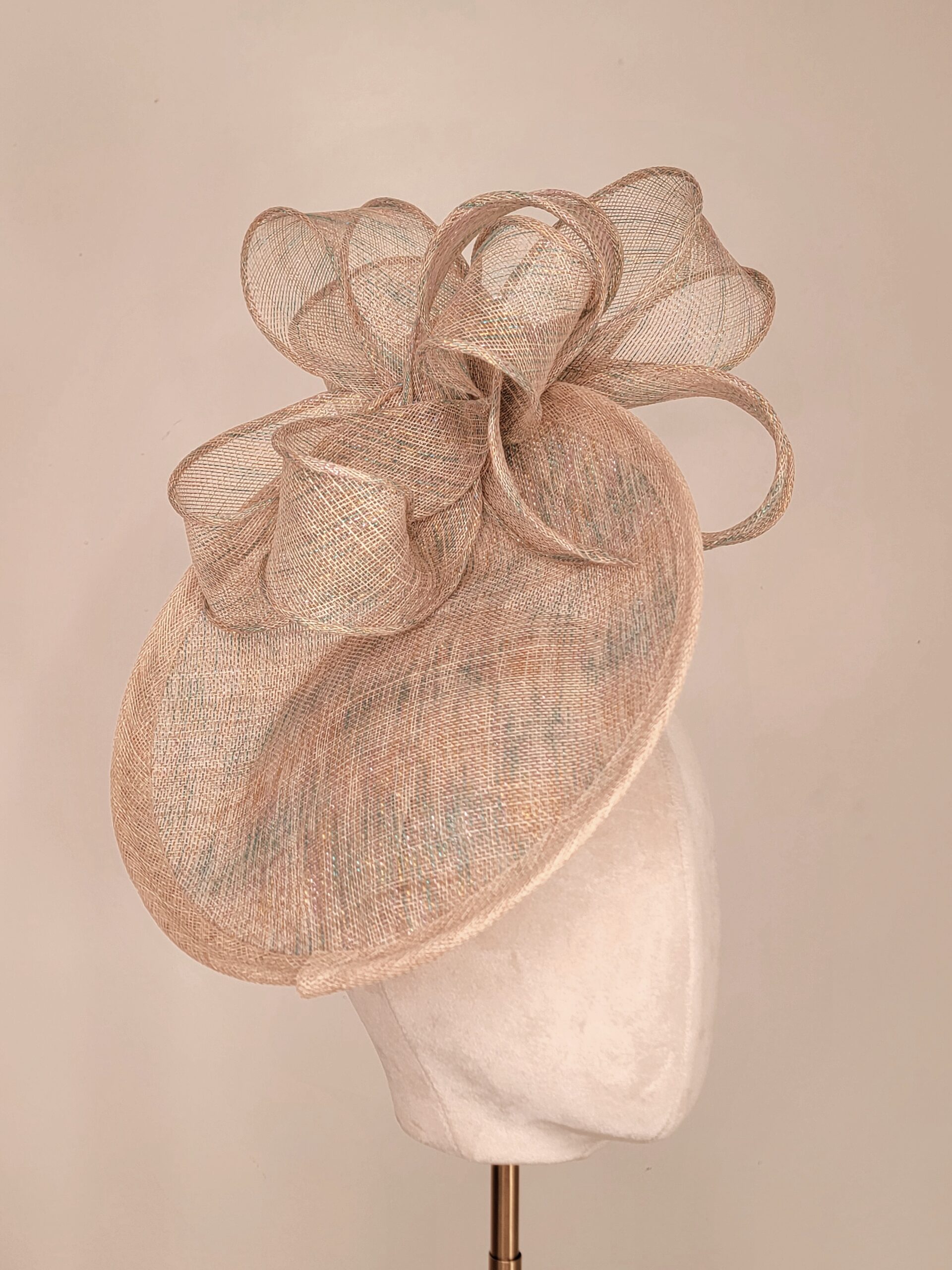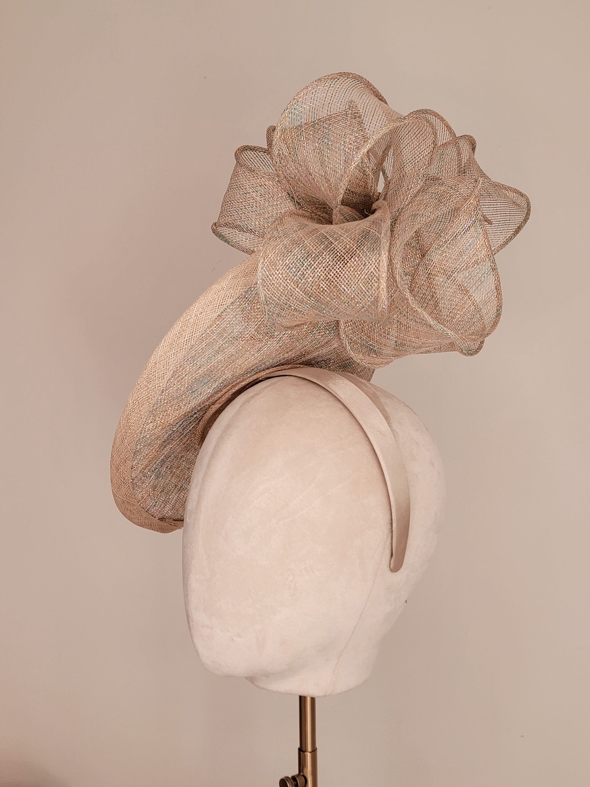 The Phoebe Sparkling Sculptural Saucer Hat by Polly Singer is a true work of art. Hand-sculpted bows sweep gracefully across the design, creating a sense of movement and unabashed style. This couture piece embodies confidence and individuality—there is only one available.